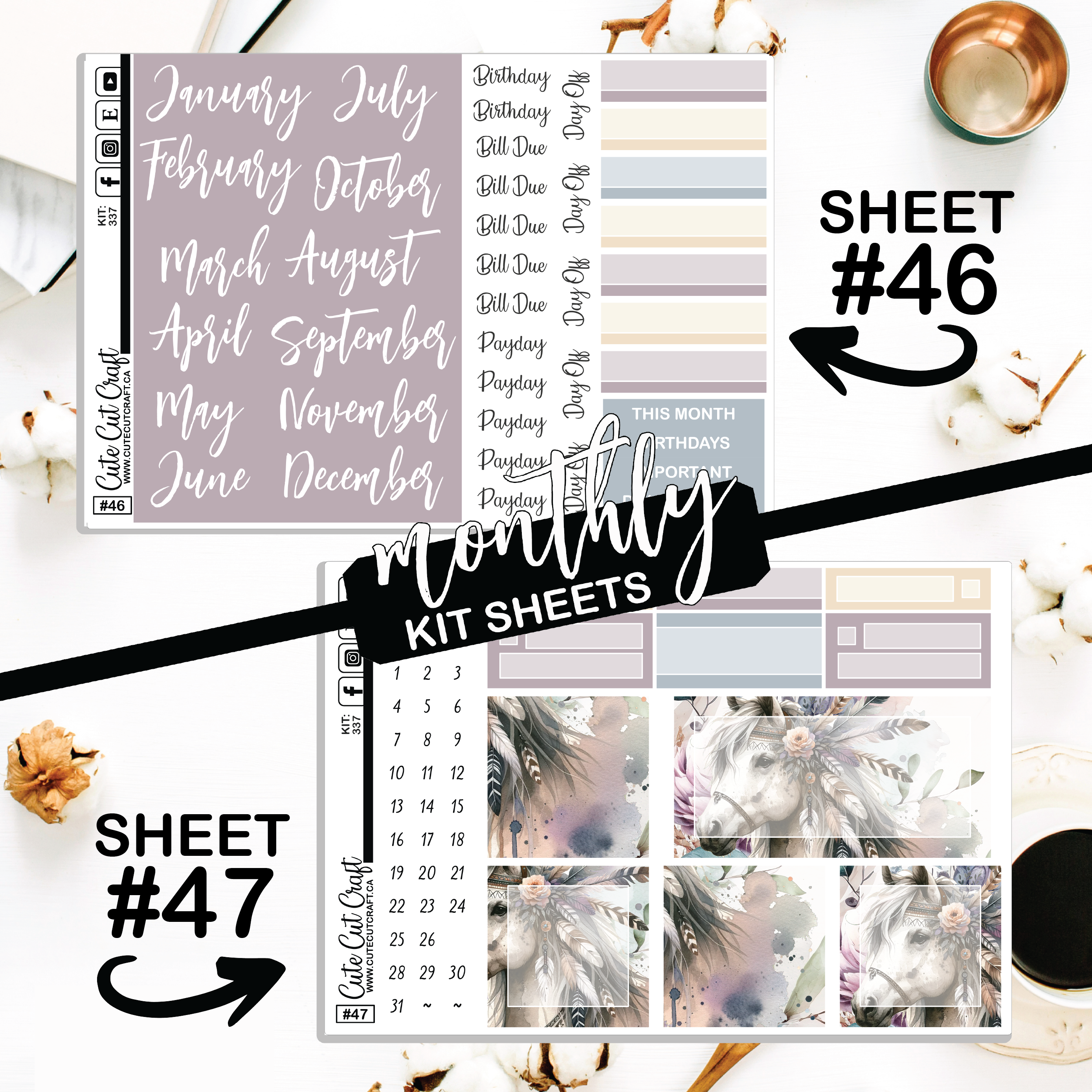 • Date covers & functional sheet [#10] & XL Brush Stroke Sheet [#43]