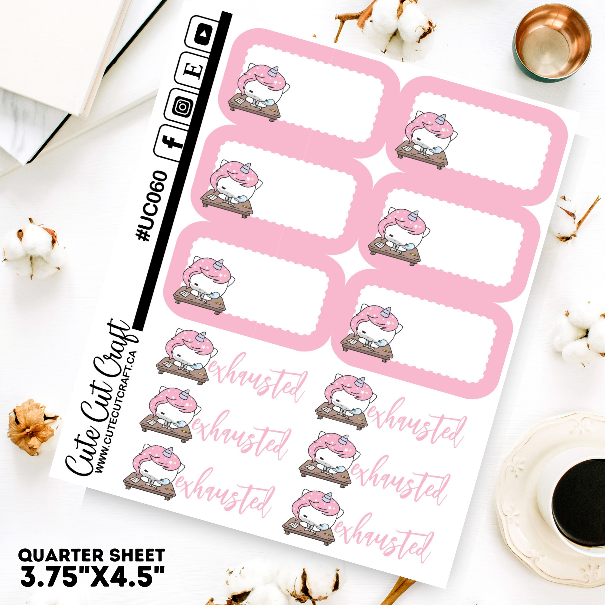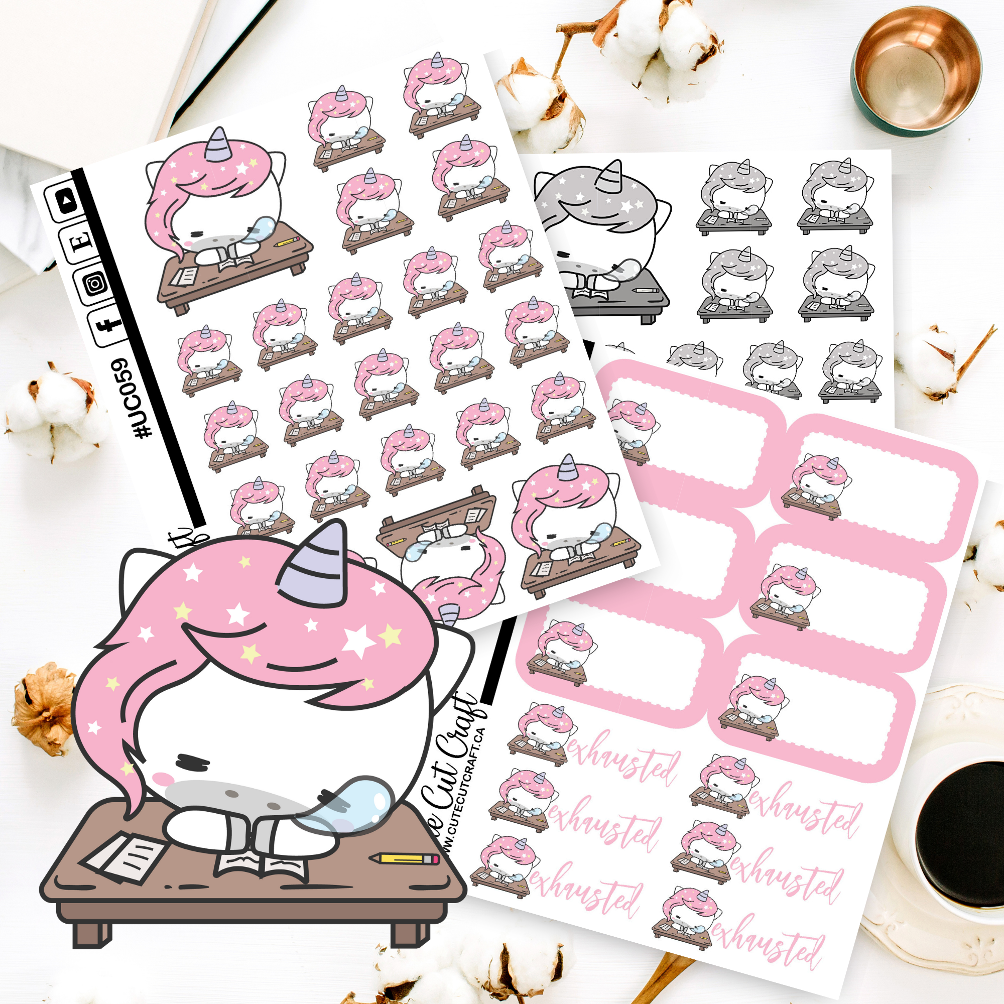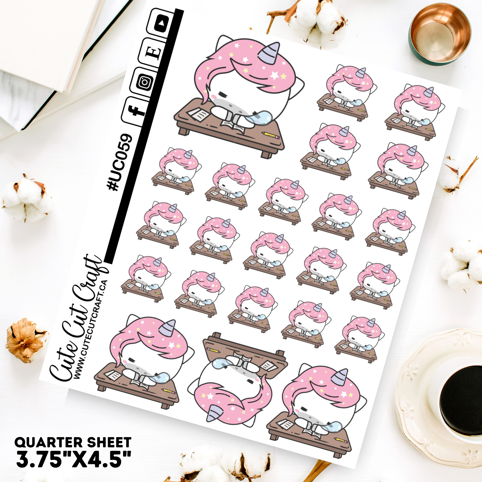 Unicorn Charlie character sheets are on our quarter sized (3.75x4.5") sticker sheets.
