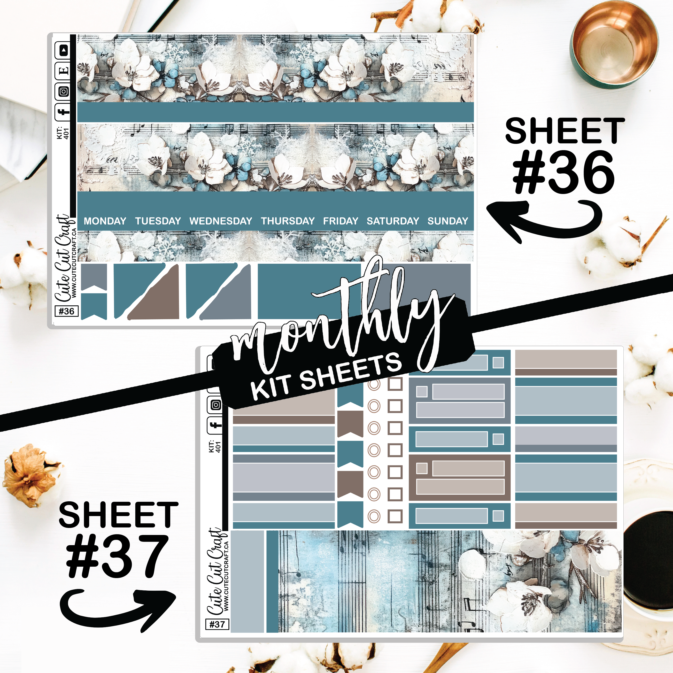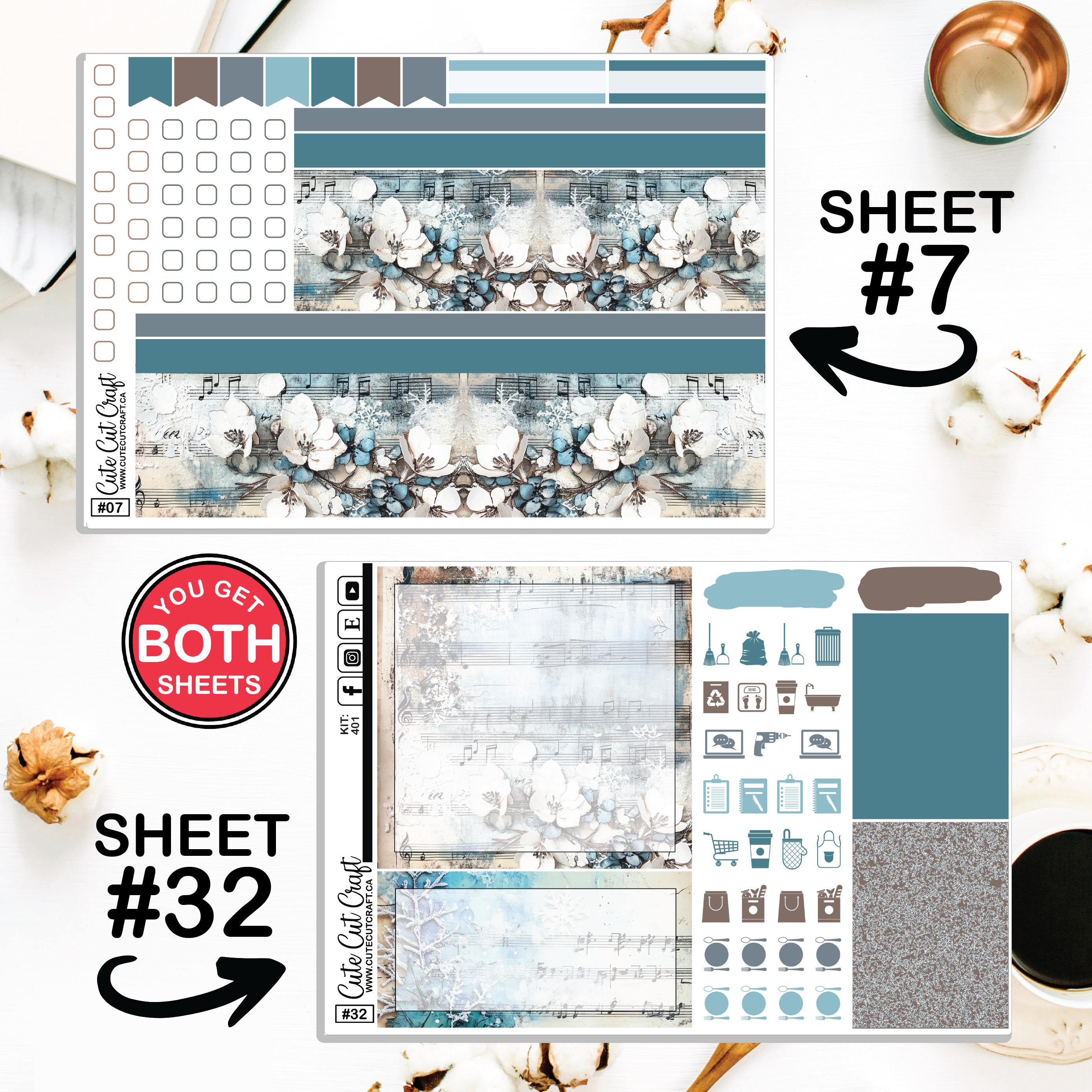• Washi sheet [#7] & Double wide boxes & headers [#32]