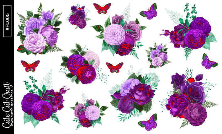 Purple Butterfly Florals || Decorative Foiled Sheet