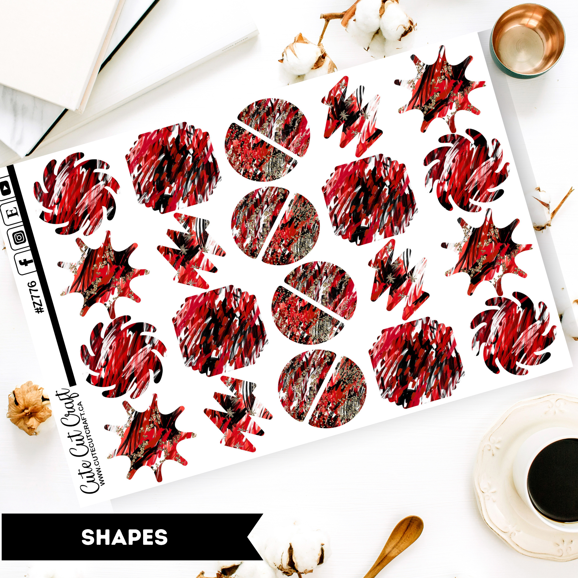 Stickers are created with a inkjet printer on permanent sticker paper. Please note, on some paper types (HP) stickers are repositionable!