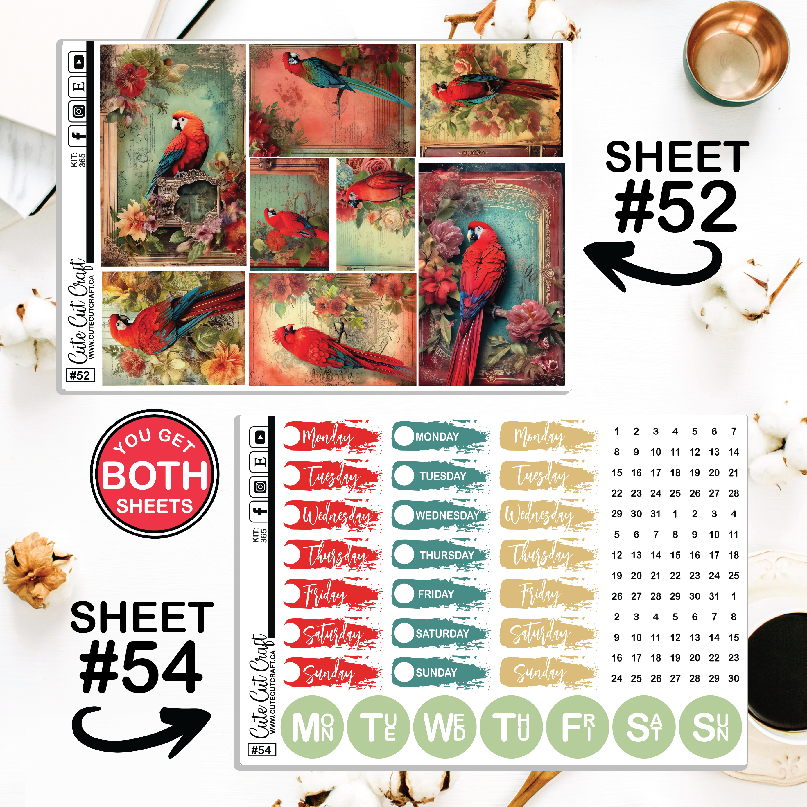 Red Parrot #365 || Journaling Sheets