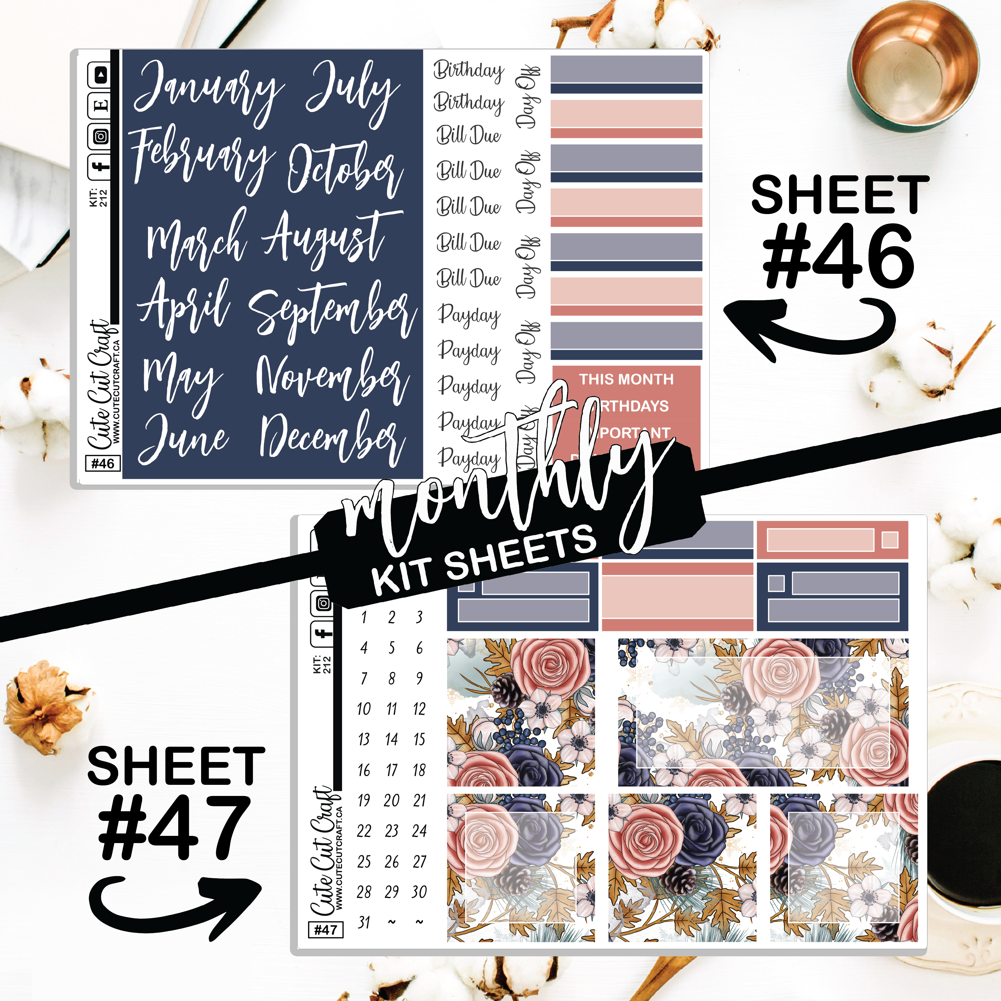 • Date covers & functional sheet [#10] & XL Brush Stroke Sheet [#43]