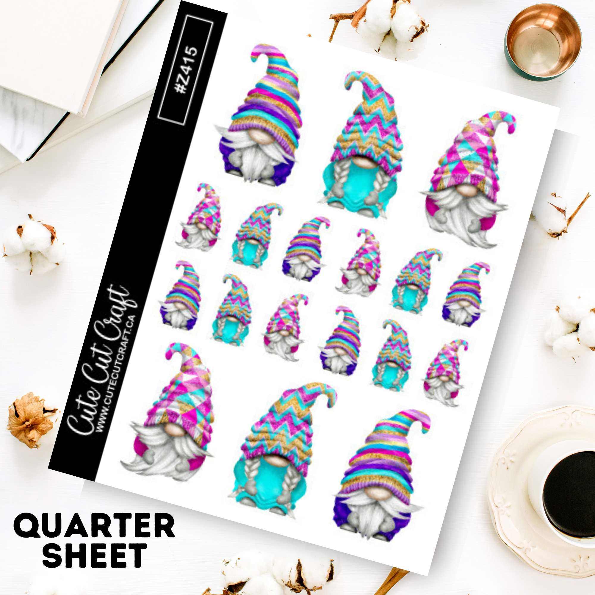 Stickers are created with a inkjet printer on permanent sticker paper. Please note, on some paper types (HP) stickers are repositionable!