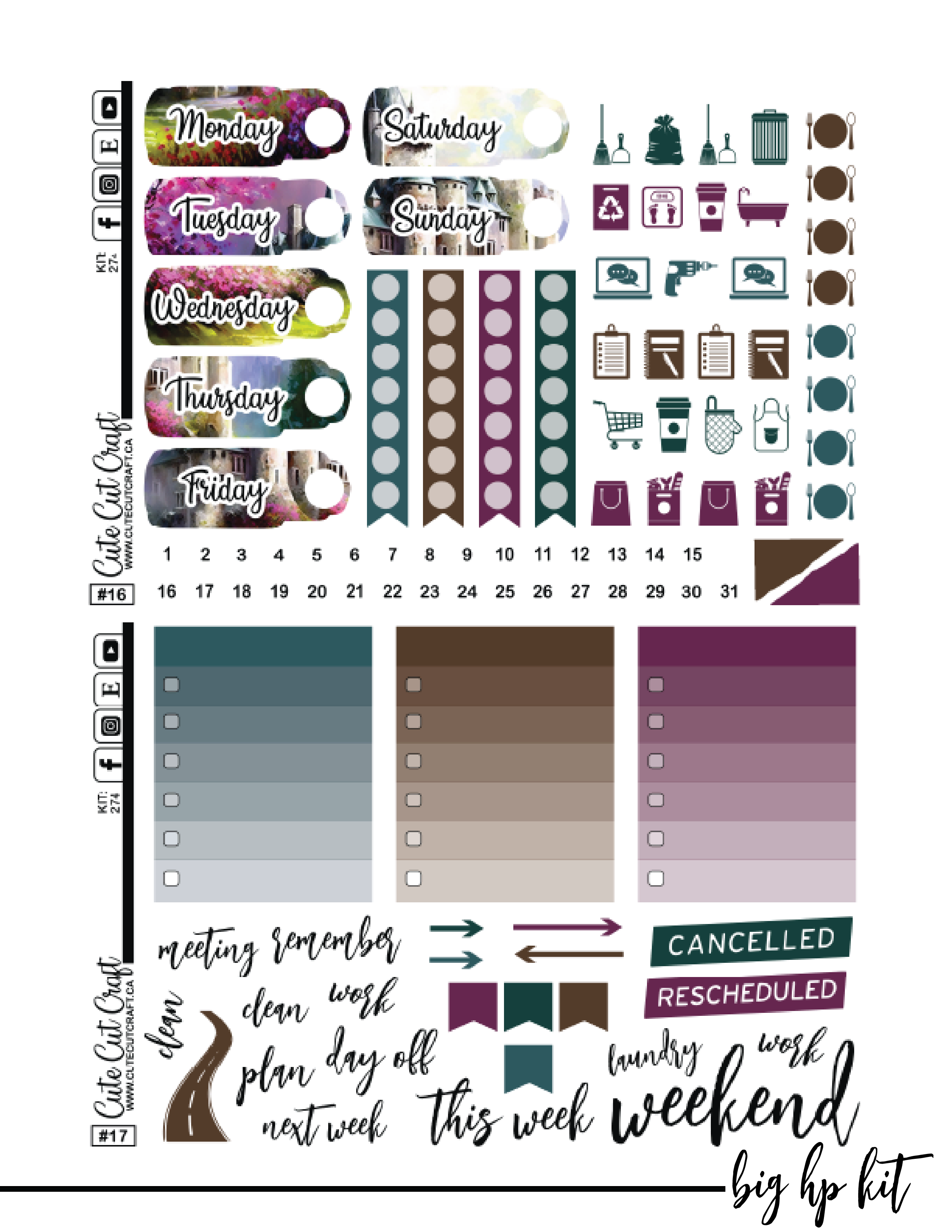 >> Make sure you don't resize! Use 'Actual Size' or '100%' to make sure they cut and fit perfectly in your planner.